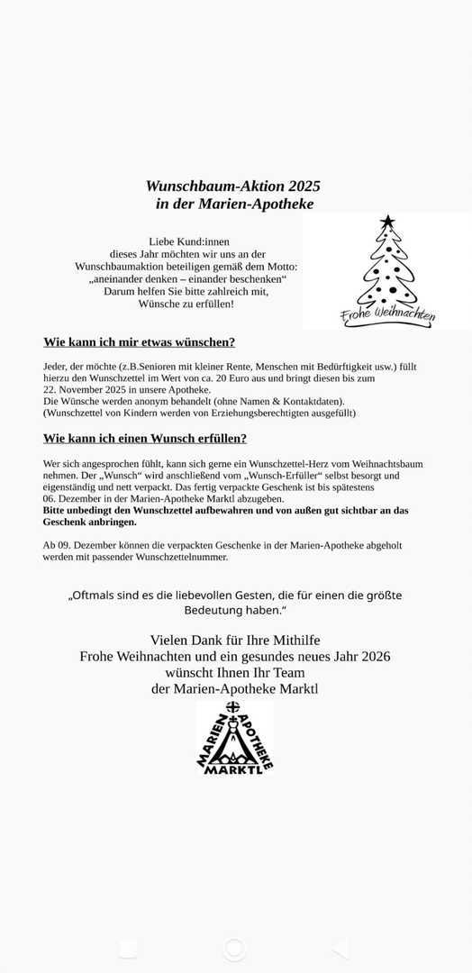 Liebe Kunden, erfüllen Sie einen Herzenswunsch von unserem Wunschbaum. Für glänzende Augen unterm Weihnachtsbaum.